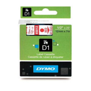 Dymo 45015, D1 Tape,12mm x 7m, Red on White