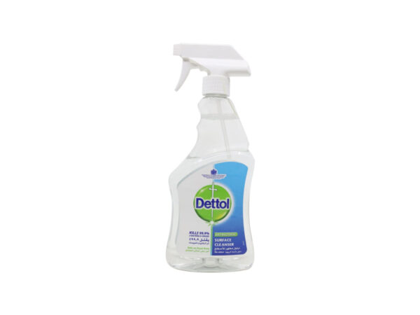 Anti-Bacterial Surface CleanserDettol Anti Bacterial Surface Cleanser is proven to remove, Allergens, Pollen particles, dust mites, pet danderSuitable for: chopping boards, high chairs, changing mats, fridge, bins, kitchen sink, baths & taps, toilets seat to disinfect your chopping boards, high chairs, changing mats, fridges, bins, kitchen sinks, baths, taps, and toilet seats, and to protect your home from bacteria and allergens first turn the red nozzle to the ‘ON’ position. Spray directly onto your desired surface, wipe over with a clean damp cloth and allow to dry. There is no need to rinse, all that is left to do is relax with time saved. Pack Size: 500mlLeaves no harsh chemical residueKills 99.9% of bacteria