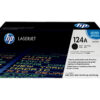 - HP 124 LaserJet Printing Supplies with HP ColorSphere toner are tuned with the printing system to optimise quality and reliability for brilliant, photo-quality printing.