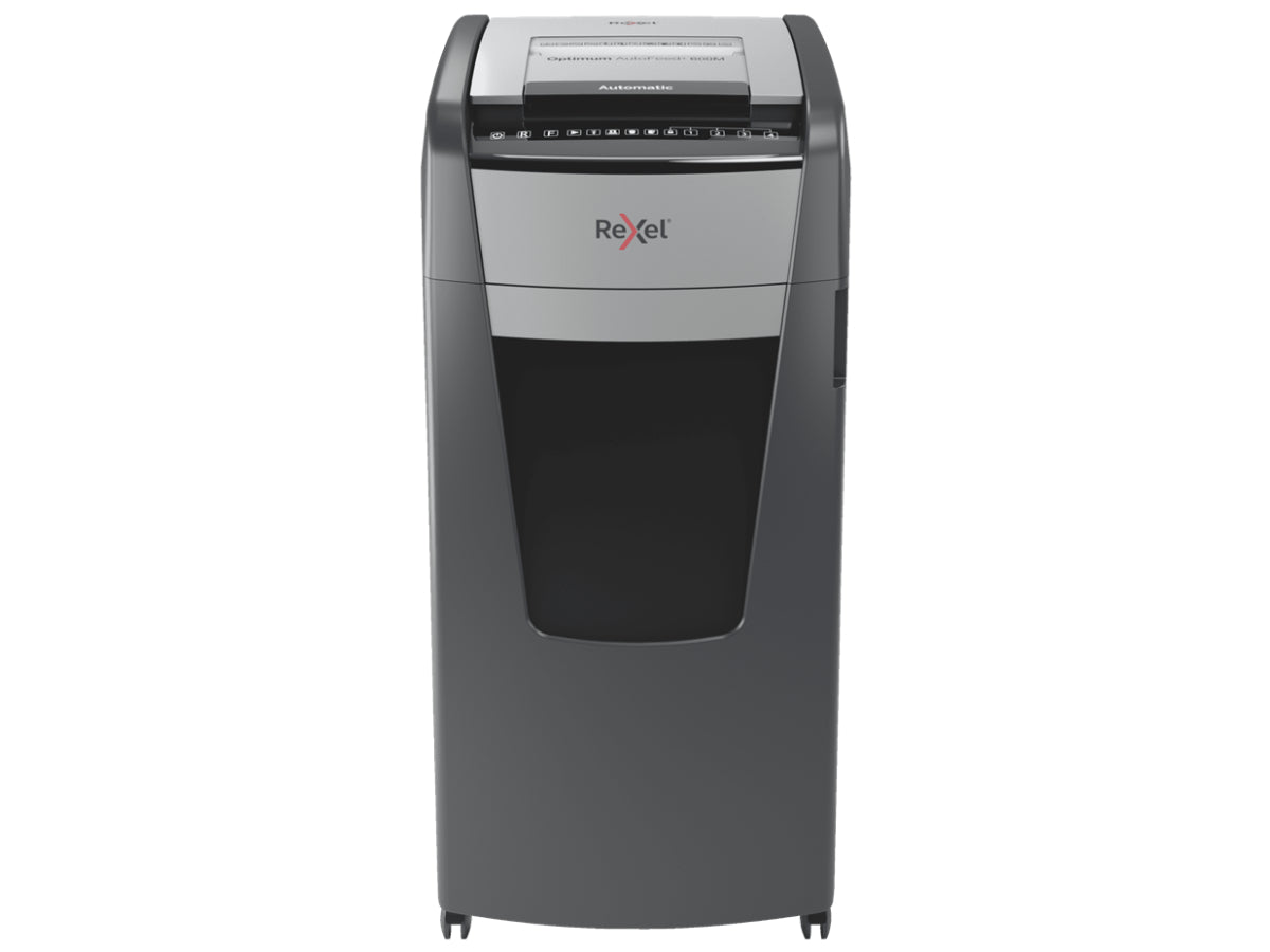 The Optimum AutoFeed+ 600M micro cut shredder automatically shreds up to 600x A4 sheets of paper (80gsm) at a time, into P-5 (2x15mm) micro cut pieces. This auto feed shredder machine is a sophisticated office shredder, featuring a 110L pull out bin. No need to manually feed paper, or remove staples and paper clips first, this automatic paper shredder will do all the work for you.
