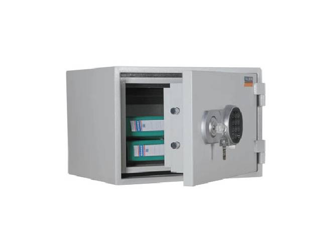 - The safe body and door are manufactured with two inter-welded walls that are filled with fire resistant concrete